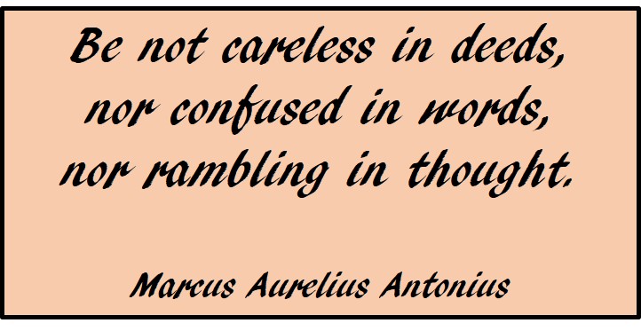 Be not careless in deeds ← Previous Next → Quote by Marcus Aurelius Share this:Sharing is helping Share on X (Opens in new window) X Share on Facebook (Opens in new window) Facebook Share on LinkedIn (Opens in new window) LinkedIn Share on WhatsApp (Opens in new window) WhatsApp Email a link to a friend (Opens in new window) Email Print (Opens in new window) Print More Share on Tumblr (Opens in new window) Tumblr Share on Pinterest (Opens in new window) Pinterest Like Loading...