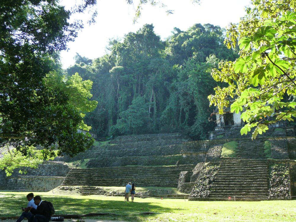 First view of the jungle covered Maya Ruins at Palenque, Mexico.