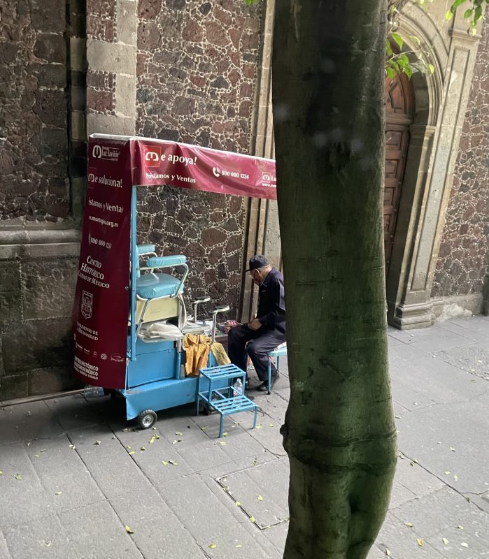 A shoe-shiner in his portable workshop, Mexico City. ← Previous Next → A shoe-shiner in his portable workshop, Mexico City. A shoe-shiner in his portable workshop, Mexico City. Share this:Sharing is helping Share on X (Opens in new window) X Share on Facebook (Opens in new window) Facebook Share on LinkedIn (Opens in new window) LinkedIn Share on WhatsApp (Opens in new window) WhatsApp Email a link to a friend (Opens in new window) Email Print (Opens in new window) Print More Share on Tumblr (Opens in new window) Tumblr Share on Pinterest (Opens in new window) Pinterest Like Loading...