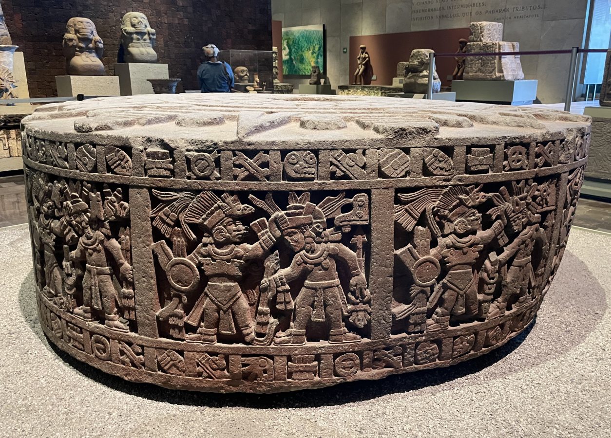 Carving of warriors in battle. Museum of Archeology, Mexico City.