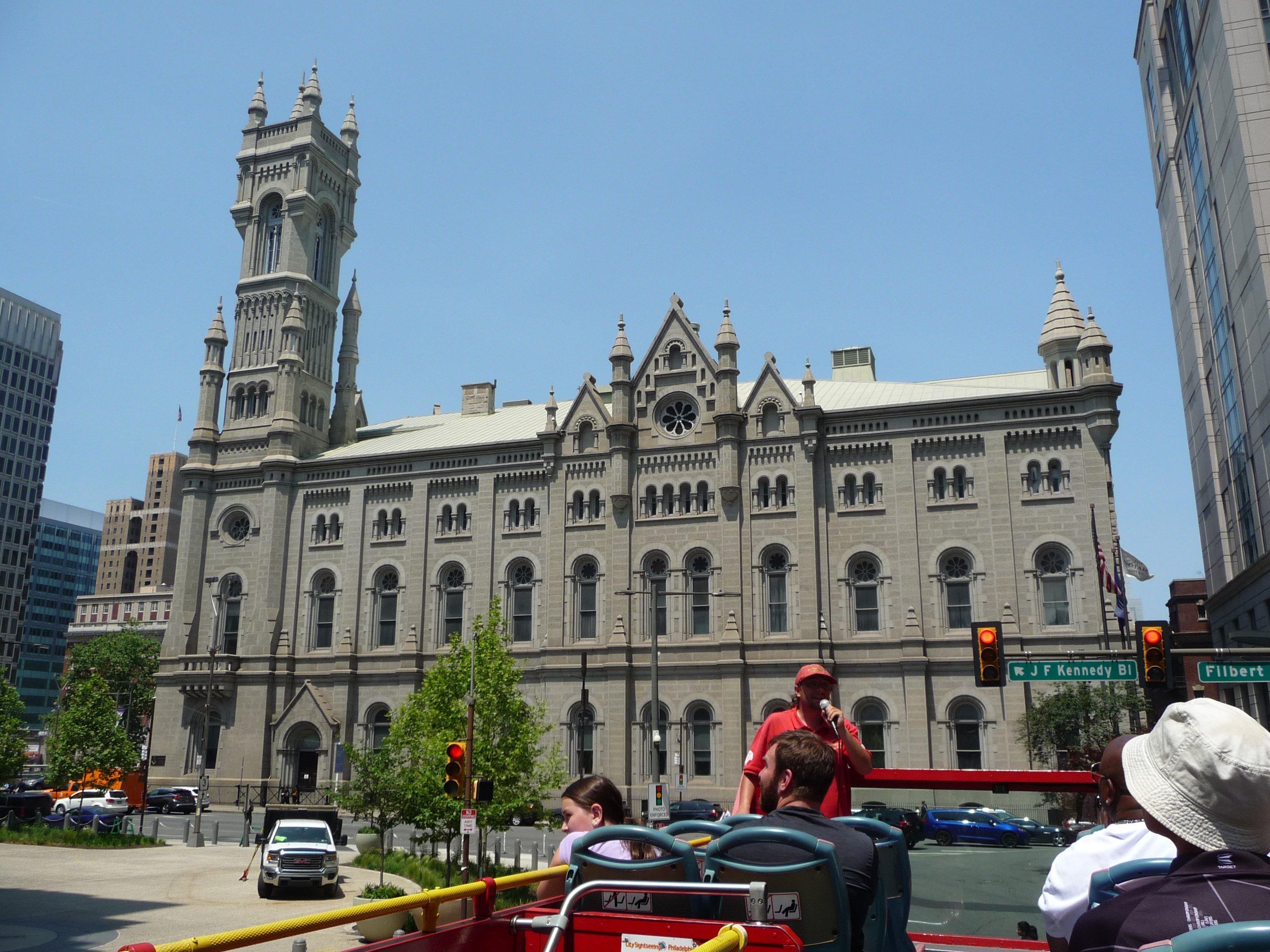 Masonic Library and Museum, Philadelphia. You can see the tour guide in red shirt and cap standing in front with this microphone.